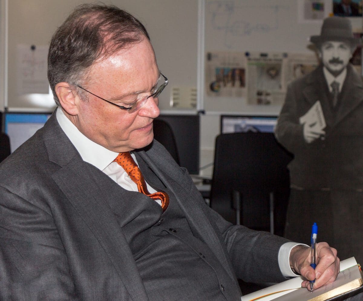 Vor der Verleihung des Bundesverdienstkreuzes hatte Stephan Weil die Kita Arche Noah besucht. Als die Kinder das „Arche-Noah“-Lied sangen, setzte er sich ganz locker auf einen der kleinen Stühle und hörte lächelnd zu.