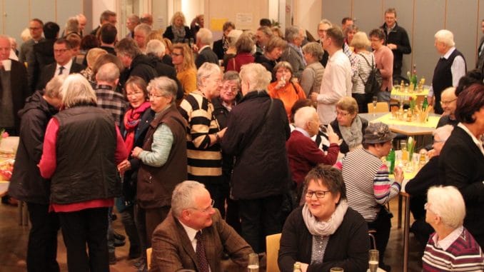 Im Anschluss an den Gottesdienst fanden sich bemerkenswert viele der Gottesdienstbesucher im Gemeindehaus an der Eulenstraße ein, um bei Häppchen vom Buffet und einem Gläschen Sekt wortwörtlich über „Gott und die Welt“ zu plaudern. Der kirchliche Neujahrsempfang ist immer eine gute Gelegenheit, in inoffiziellem Rahmen Netzwerke zu pflegen, Bekannte zu treffen und Projekte im Gespräch zu entwickeln. (stb)
