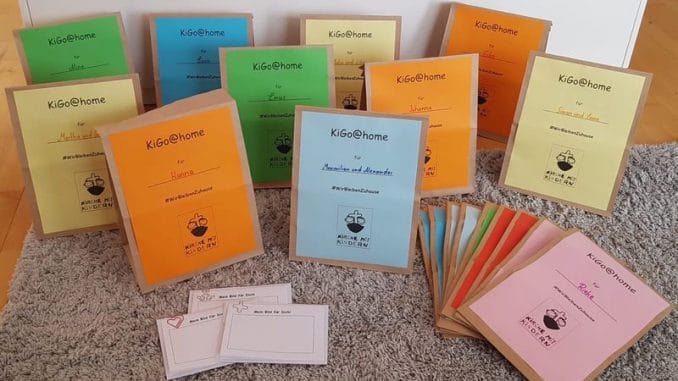 Wenn die Kinder wegen der Corona-Ansteckungsgefahr nicht ins Gemeindehaus zum Kindergottesdienst (KiGo) kommen können, dann muss eben der KiGo zu ihnen nach Hause kommen. Ein Verzicht auf den Kindergottesdienst kommt aber auf keinen Fall in die Tüte!“ Ausgehend von dieser Überlegung versucht der Hottelner Kindergottesdienst nun vorübergehend neue Wege zu gehen: KiGo@home! Die Mitarbeiterinnen Annegret Warneke und Stephanie Franke haben für die Kinder, die normalerweise samstags zum KiGo kommen würden, bunte Tüten gepackt, die alles enthalten, was einen richtigen KiGo ausmacht: Eine biblische Geschichte zum Vorlesen und Zuhören, Impulse zum Nach- und Weiterdenken, einen kreativen Bastelvorschlag, der das Gehörtes vertieft, ein Lied, das zum Thema passt, und natürlich eine kleine, süße Überraschung. Die KiGo@home-Tüten werden jeweils an dem Samstag, an dem eigentlich KiGo in Hotteln stattfinden würde, von den Mitarbeitenden bei den Kindern zuhause vor die Tür gestellt. „Was die Kinder und deren Eltern dann daraus machen, liegt natürlich nicht in unserer Hand“, geben die Organisatorinnen zu, „aber den KiGo einfach ausfallen zu lassen, ist auch keine Option.“ Und bekanntlich weht der Geist Gottes ohnehin, wo er will! Zudem wissen die Mitarbeiterinnen, dass die KiGo-Kids sehr selbstständig sind, und insofern darf man gespannt sein, wie sich das KiGo@home-Projekt entwickeln und welche Resonanzen es hervorrufen wird.