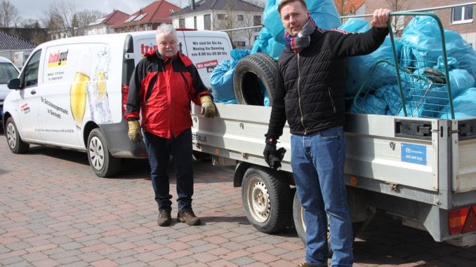 Knapp fünfzig blaue Säcke landeten zusammen mit zwei Autoreifen und einigen sperrigen Metallteilen auf dem Anhänger, um dann korrekt von Kalle Esser und Heiko Jacob auf dem Wertstoffhof entsorgt zu werden.