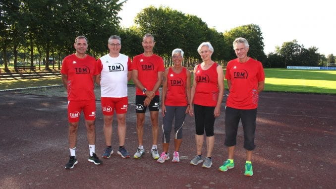 Der 4. Mai fand am vorigen Dienstag statt…..Jedenfalls für die Ausdauersportler vom Lauftreff des TKJ. Mit Corona-bedingter viermonatiger Verspätung übergaben der Leiter der T.D.M.-Laufgruppe, Thomas Dettmar (1. Foto re.), und TKJ-Lauftreff-Leiter Björn Bartels (1. Foto li.) die von der Firma T.D.M. auch in diesem Jahr gesponserte Sportkleidung an die Langstreckenläufer. Normalerweise erfolgt die Übergabe immer am ersten Dienstag im Mai. Über Laufshorts, -Singlets oder T-Shirts freuten sich Eric Kiepke, Björn Bartels, Andreas Weiß, Andrea Eineder, Susanne Bremsteller und Heinz Johannes. Sportkleidung werden auch Uschi Wehmeyer und Chris Linschmann erhalten, die bei der Übergabe verhindert waren.