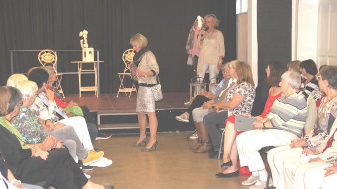 Durch den Mittelgang zur Bühne, der einen echten Laufsteg ersetzte, schritten, liefen und promenierten sechzehn Damen, die der Boutique Picco Bello Moden und deren Inhaberin freundschaftlich verbunden sind, als Kundinnen, aber, wie die Modefachfrau betont, „nach den langen Jahren auch ganz oft als Freundinnen.“ Manche sind es schon gewohnt, die Blicke der Zuschauenden beim Defilee auf sich zu spüren. Für andere war es 2021 eine Premiere, als Mannequin aufzutreten. „Die haben sicher ein bisschen Zittern“, so Renner.