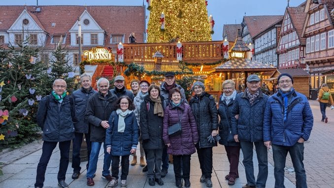 Dass sich die Aktivitäten der älteren Herren vom Rentner-Stammtisch keineswegs nur auf den Kaffeeklatsch dienstags und freitags von 11 bis 12 Uhr in ihrem Stammlokal, dem Hallenbad-Restaurant, beschränken, ist in Sarstedt hinlänglich bekannt. Immer wieder „schwärmen die Stammtischler aus“, um ihren Horizont zu erweitern. Vor kurzem, selbstredend ebenfalls an einem Dienstag, war der Weihnachtsmarkt in Celle das Ziel. Insgesamt 14 Personen, Stammtischler mit ihren Frauen sowie vier Gäste, verbrachten dort einige angeregte Stunden. Und natürlich gab es an diesem Dienstagnachmittag nicht nur Kaffee zu trinken, sondern auch Glühwein oder Eierpunsch. /jm