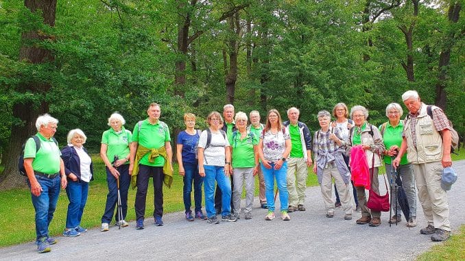 Es wurden wie immer zwei verschieden lange Rundwanderungen angeboten, die auf unterschiedlichen Wegen durch das Wandergebiet führten. Der Himmel war bewölkt, als sich die beiden Wandergruppen jeweils auf ihrer ausgewählten Wanderstrecke auf den Weg machten. Am Annastift vorbei ging es weiter Richtung Herrmann-Löns-Park. Auf sehr schönen Wanderwegen mit guter Aussicht wurden die Annateiche umrundet und die Wanderungen über den Wolfsgraben und durch den Hermann-Löns-Park fortgesetzt. Natürlich ging es auch vorbei an der historischen Bockwindmühle, die nach einer erfolgreichen Restaurierung im Jahr 2012 wieder aufgebaut wurde. Weiter durch die Unterführung der Eisenbahn wurde bald der ca. 112 ha große, eingezäunte Tiergarten erreicht. Hier luden etliche Bänke zu einer wohlverdienten Pause ein. Danach ging es kreuz und quer durch den Tiergarten mit seinen Wiesen, auf denen riesige, alte, einzeln stehende Bäume zu bewundern waren, sowie durch den Hochwald mit zum Teil uralten Eichen, Kastanien und Hainbuchen. Im Tiergarten sollen ca. 40 verschiedene Baumarten, eine große Anzahl von verschiedenen Vögeln (Eulen, Spechte, Kleiber, Stare usw.) und unter vielen anderen Lebewesen etliche Fledermäuse heimisch sein. Interessant für die Wandernden waren auch die freilebenden Wildtiere. Aus der Ferne konnte man Damwild und Rehe beobachten, das Wildschweingehege mit Wildschweinen und Frischlingen lag direkt am Wegesrand.