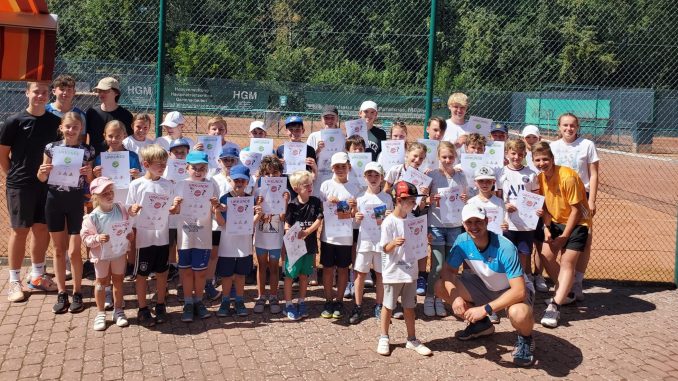 In den Sommerferien fanden bei Bilderbuchwetter wieder die zwei Tenniscamps des TSV Rethen auf der Anlage im Erbenholz statt. Über 70 Kinder waren auch im 10. Jahr bei den von Jugendwartin Anja Niss organisierten Camps dabei, die schon kurz nach Bekanntgabe der Termine schnell ausgebucht waren. Die Mischung aus spielerischer Einführung mit Kennenlern- und Fangspielen, Basketball und Hockey bis hin zu Taktiktraining und dem abschließenden Tennisturnier für alle Teilnehmenden begeisterte nicht nur die Kinder und Jugendlichen zwischen 6 und 16 Jahren. Auch das Team von Trainern, Betreuerinnen und Begleitern rund um Anja Niss hatte wieder einmal großen Spaß mit dem Tennis-Nachwuchs.