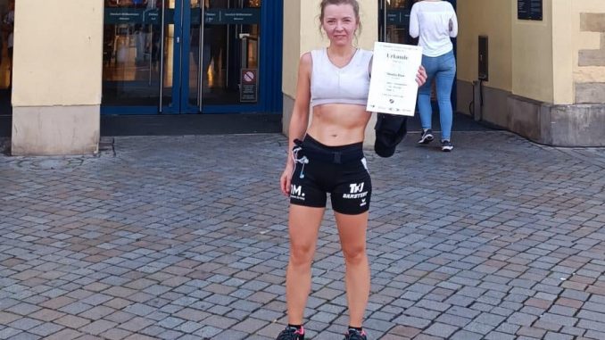 Nach der Rückkehr nach Sarstedt berichtete sie: „Ziel und Start war am Hamelner Hochzeitshaus/ Pferdemarkt bei der Stadt-Galerie. Es herrschten gute äußere Bedingungen mit sommerlichen Temperaturen. Die Organisatoren haben sich Mühe gegeben und die Fußgängerzone in der Altstadt wurde zu einer tollen Laufarena. Trotz der schmalen Gassen an einigen Stellen wurde es nicht eng beim Laufen. Im Hintergrund ertönte die Flöte des Rattenfängers in den hübschen Gassen.“