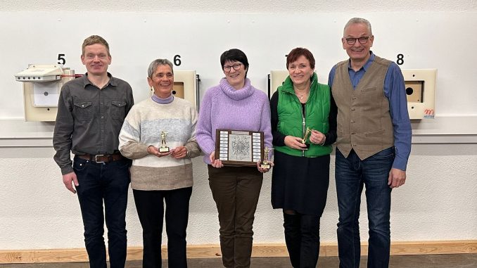 Nach dem traditionellen gemeinsamen Frühstück aller Anwesenden war das sportliche Geschick am Luftgewehr gefragt. Gewertet wurden dabei die Zehntel-Teiler. Bibiana Winnecke, die vor Ruth Salzer und Birgit Meyer als Gewinnerin hervorging, freute sich sehr über den ihr überreichten Heinz Sperr-Wanderpreis.