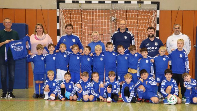 Die Freude bei den Kindern sowie bei Trainern und Betreuern war groß, als Katja Hille, Leiterin der Diakoniestation Sarstedt, und Michael Steinmeyer, Leiter des Altenpflegezentrums St. Nicolai, mit Geschenken im Gepäck den 1. FC Sarstedt besuchten. Die neuen Hoodies der F-Jugend in den strahlend blauen Vereinsfarben mit tragen nun das in weiß gedruckte Logo der DAH sowie den Leitgedanken „Füreinander da“. Die DAH wünscht dem Fußball-Nachwuchs viel Freude mit den neuen Hoodies und ein allzeit erfolgreiches Spiel.