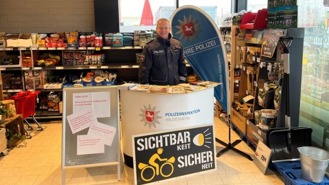 An einem Stand der Polizei im Supermarkt am Moorberg konnten die Bürgerinnen und Bürger am Montagmittag in den direkten Austausch mit einem Beamten des Präventionsteams der Polizei Hildesheim kommen. Der Beamte stand für Fragen und Anmerkungen rund um die Verkehrssituation im Bereich Sarstedt zur Verfügung.