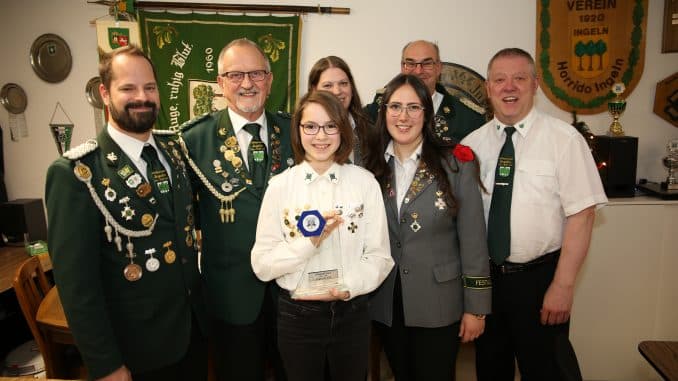 Ein Tausendstel Millimeter Unterschied und die darauffolgenden Ehrungen, die den Höhepunkt des diesjährigen Königsschießens in Ingeln ausmachten, wären völlig anders ausgefallen. Manchmal zahlt sich die Beharrlichkeit nach jahrelangem Schießtraining aus, aber auch pures Glück spielt eine Rolle – und in diesem Fall wohl beides. Anlässlich des 25-jährigen Jubiläums des Schützenhauses und seines 30-jährigen Engagements als Oberschießsportleiter des Schützenvereins „Horrido“ Ingeln e. V. hat Uwe Klokow einen besonderen Jubiläumspokal gestiftet. Jeder konnte ihn über alle Schützenklassen hinweg gewinnen, und die glückliche Gewinnerin, Romy Grote, erzielte mit einem 14,0 Teiler knapp vor Tom Schneider mit einem 14,1 Teiler ein um einen Tausendstel Millimeter besseres Ergebnis. Dies sorgte für Verblüffung und Begeisterung in der gesamten Schützenschaft. Die Pokalübergabe fand während der Weihnachtsfeier statt, nachdem die Winterkönige prämiert wurden.
