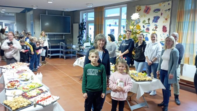 Mit einem adventlichen Frühstück wurden kurz vor Beginn der Weihnachtsferien die Grundschulkinder in Ahrbergen verwöhnt. Das ein Mal im Monat stattfindende Powerfrühstück wurde diesmal gespendet vom Förderkreis für Kultur- und Heimatpflege Ahrbergen, vertreten durch die Ortsheimatpflegerin Mechthild Hinrichs. Wie immer hatten engagierte Mütter ein nicht nur gesundes und reichhaltiges, sondern auch optisch ansprechendes Frühstück gezaubert. Neben leckeren Brötchen konnten die Schülerinnen und Schüler sich an frischem Obst und Gemüse satt essen. Und da das Auge bekanntlich mit isst gab es unter anderem kleine Blätterteighäppchen sowie Gemüse in Sternform. Schulleiterin Gerlinde Zempel dankte den Spendenden und auch den Müttern für ihr anhaltendes Engagement.
