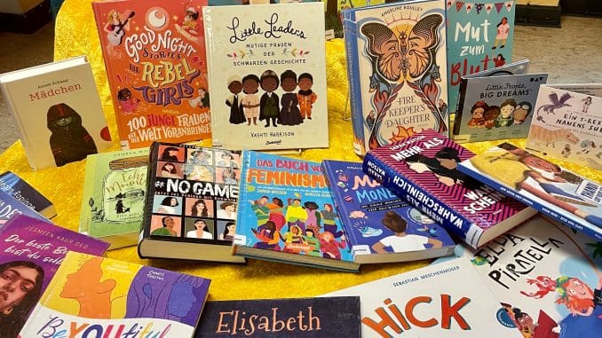 Das Themenpaket der Büchereizentrale Niedersachsen beinhaltet 23 Bücher vom Bilderbuch bis zum Jugendbuch und Sachbuch, sowie zwei Hörbücher und eine DVD, ergänzt durch hauseigene Frauenpower aus der Stadtbücherei.