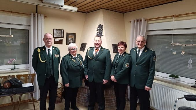 Nach zahlreichen Ehrungen für langjährige Mitgliedschaft im Verein und im Niedersächsischen Schützenbund wurde Alina Meier (in Abwesenheit) die Damen-Jubiläumskette verliehen.