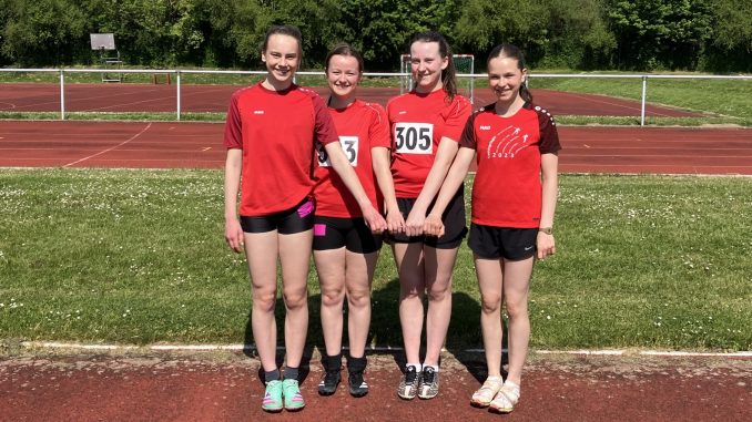 Für einen weiteren Titel im Weitsprung hat es bei der weiblichen U18 für Lucie Knaust diesmal leider nicht gereicht, sie wurde mit 4,74 Metern Vizemeisterin, sicherte sich aber im 100-Meter-Sprint (13,96 Sekunden) ihren Einzelkreismeistertitel vor Hannah Coßmann, die Dritte wurde. Gemeinsam mit Mavie Bösel, die mit 1,40 Metern im Hochsprung Kreismeisterin wurde, und Neele Hebel liefen die vier Sarstedterinnen in der Altersklasse U20 bei den 4×100-Meter-Staffeln mit. Den Start machte hier Lucie Knaust, die auf Mavie Bösel souverän wechselte. Hannah Coßmann lief in der zweiten Kurve zu Neele Hebel, die in einem tollen Endspurt den Staffelstab in 54,54 Sekunden über die Ziellinie brachte. Alle vier wurden gemeinsam Kreismeisterinnen. Neele Hebel konnte auch im Einzelrennen der 800 Meter zusätzlich Kreismeisterin in guten 2:28,96 Minuten werden.