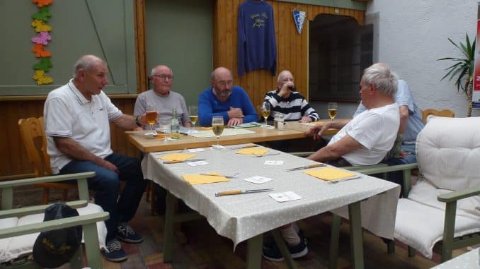 Nichtsdestotrotz wurde am vorigen Sonnabend das 60-jährige Bestehen der „Wilden Liga“ gefeiert. Dazu konnten der „Ehren-Präsident“, der amtierende „Präsident“ und das letzte noch lebende Gründungs-Mitglied, „Smokie Schirmer“ (hinten v.l.), etwa 25 ehemalige Kicker zur Jubiläums-Feier begrüßen. /jm