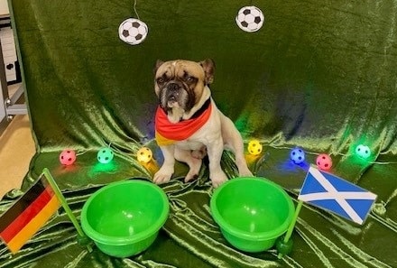 Für das leibliche Wohl und die Stärkung der Spielenden sorgten gegrillte Köstlichkeiten und gekühlte Getränke. Fußballhits brachten Publikum und Torschützen in „EM-Stimmung“ und ließen die „Aufwärmfeier“ zu einem großartigen Start in den diesjährigen Fußballsommer werden. Zum Abschluss musste dann noch eine knifflige Wahl getroffen werden. „Was wäre eine Fußball-EM ohne ein Orakel“, so Christian Richter, „gemeinsam haben wir unsere französische Bulldogge ,Spike‘ ausgewählt, die uns zukünftig an den jeweiligen Spieltagen verrät, welche Mannschaft gewinnen wird.“ Bei Fußball-Fernsehübertragungen in der Vergangenheit – so Richter augenzwinkernd – habe der Hund immer klare Zeichen als Siegertipps abgegeben. Wie Richter erklärt, gibt es für die EM zwei Ecken mit Aufklebern der Länder des Tagesspiels. „Auf welche Seite Spike dann unter kritischer Beobachtung aller Senioren um Punkt 11 Uhr läuft, ist dann sein klarer Siegertipp“, schmunzelt er vielsagend.