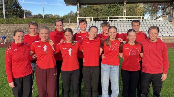 In diesem Jahr konnten mit einer Männer- und einer weiblichen U20-Mannschaft wieder zwei Sarstedter Teams bei den Landesmeisterschaften Team (früher: DMM) am 29. September in Verden teilnehmen. Leider waren beide Teams aufgrund von kurzfristigen Absagen in ihrer Durchführung etwas eingeschränkt, gilt es doch gemeinsam mit der Mannschaft neun bzw. fünf Disziplinen zu stemmen, wobei ein einzelner Athlet bzw. Athletin nie mehr als drei verschiedene Disziplinen übernehmen darf und immer zwei Ergebnisse in die Teamwertung fließen.