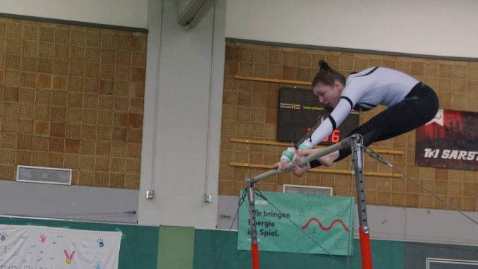 Eine Klasse höher in der P7/P8 erturnte Luise Kantereit Platz 9. Sie zeigte am Boden die schwierige P8 mit einem Flickflack und erhielt hier, wie auch am Sprung, mit sauber geturntem Überschlag über den Sprungtisch ihre höchsten Wertungen. Knapp dahinter erreichte Nele Tönnies den elften Platz.