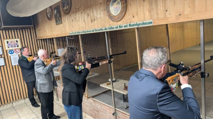 Ebenfalls traditionell an den Schießstand gebeten wurden die geladenen Ehrengäste Harry Heimann (stellvertretender Bürgermeister), Andrea Satli (Stadtmanagerin) und Markus Brinkmann (Landtagsabgeordneter). Die Schießrunde wurde durch eine gesellige Zusammenkunft in der Vereinsgaststätte der ASG abgerundet, bei der sich alle Anwesenden bei Speis und Trank in entspannter Atmosphäre austauschen konnten.