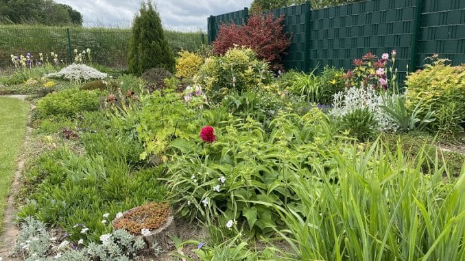In dem großen Bauerngarten sind die Blumen über Jahre von Ruth Ohms vom kleinsten Ableger oder durch Stecklinge zu großen Stauden gezüchtet worden und werden nun von ihrer Tochter Hildegard allen Interessierten präsentiert. Eine Vielzahl an Irissorten, Sukkulenten, bunten Stauden und seltenen Bodendeckern sind in diesem Blumenparadies zu sehen, dabei gibt der Garten in jedem Jahr und Monat einen anderen Anblick ab. Schmetterlinge, Bienen und Hummeln finden hier neben reichlich Nahrung auch mehrere kühle Wasserstellen. Wie gewünscht werden wieder viele Blumenableger gegen eine Spende abgegeben. Interessierte können sich auf diesem Wege mit seltenen Bodendeckern und anderen Pflanzen versorgen und ihren eigenen Garten damit verschönern.