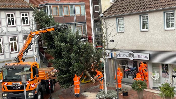 Die Vorbereitungen für die Weihnachtszeit laufen an. Seit heute Morgen sind die Mitarbeiter vom Sarstedter Bauhof im Einsatz, um die Innenstadt mit vielen Lichtern festlich zu schmücken. Auch der große Weihnachtsbaum hat bereits vor dem Rathaus Stellung bezogen.